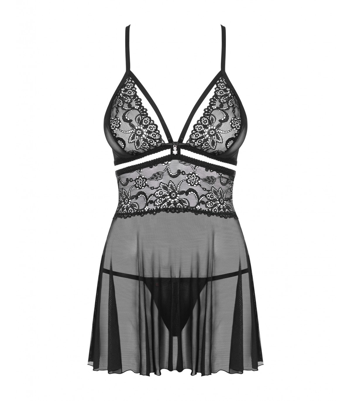 838-BAB-1 BABYDOLL & THONG BLACK L/XL