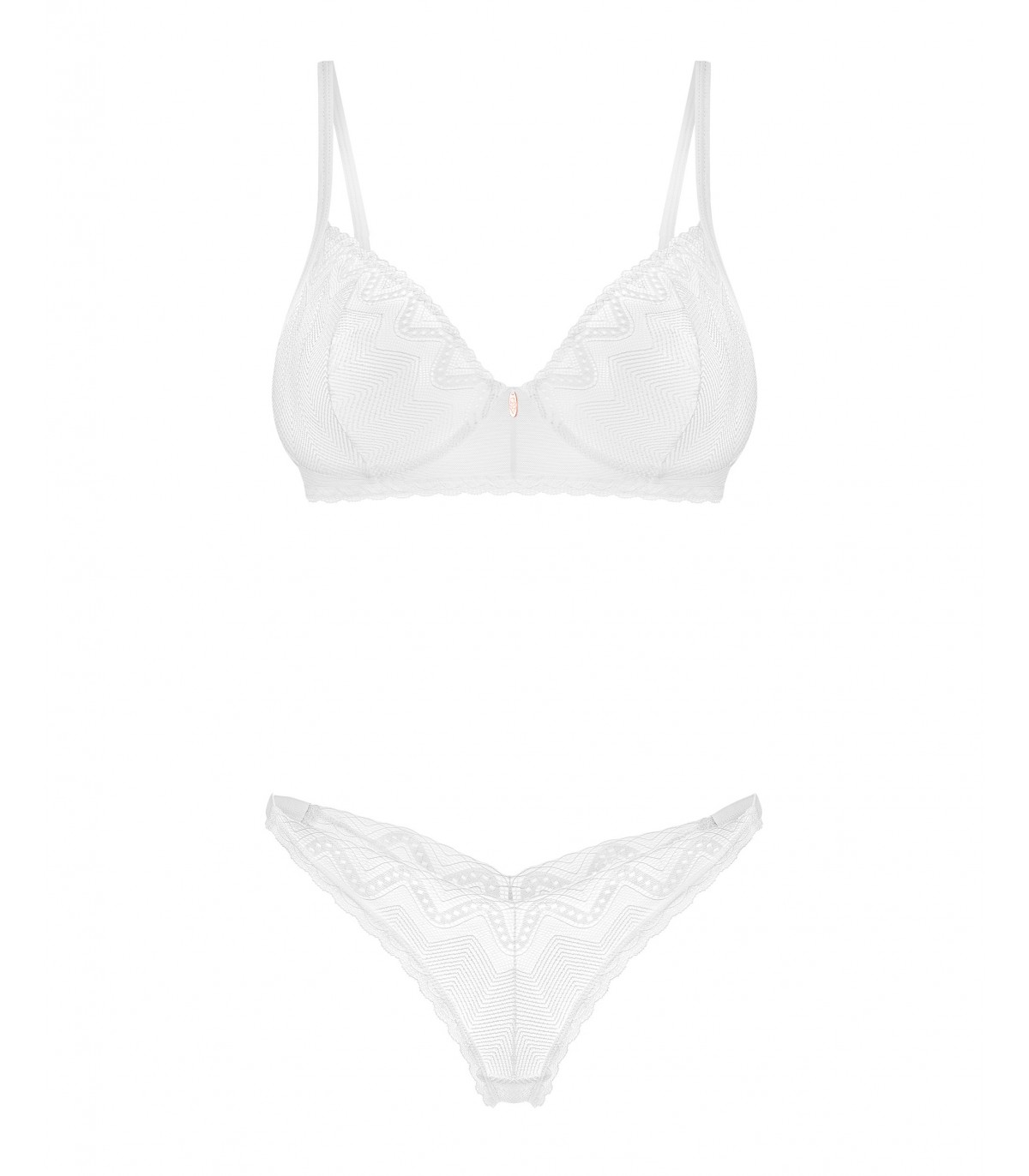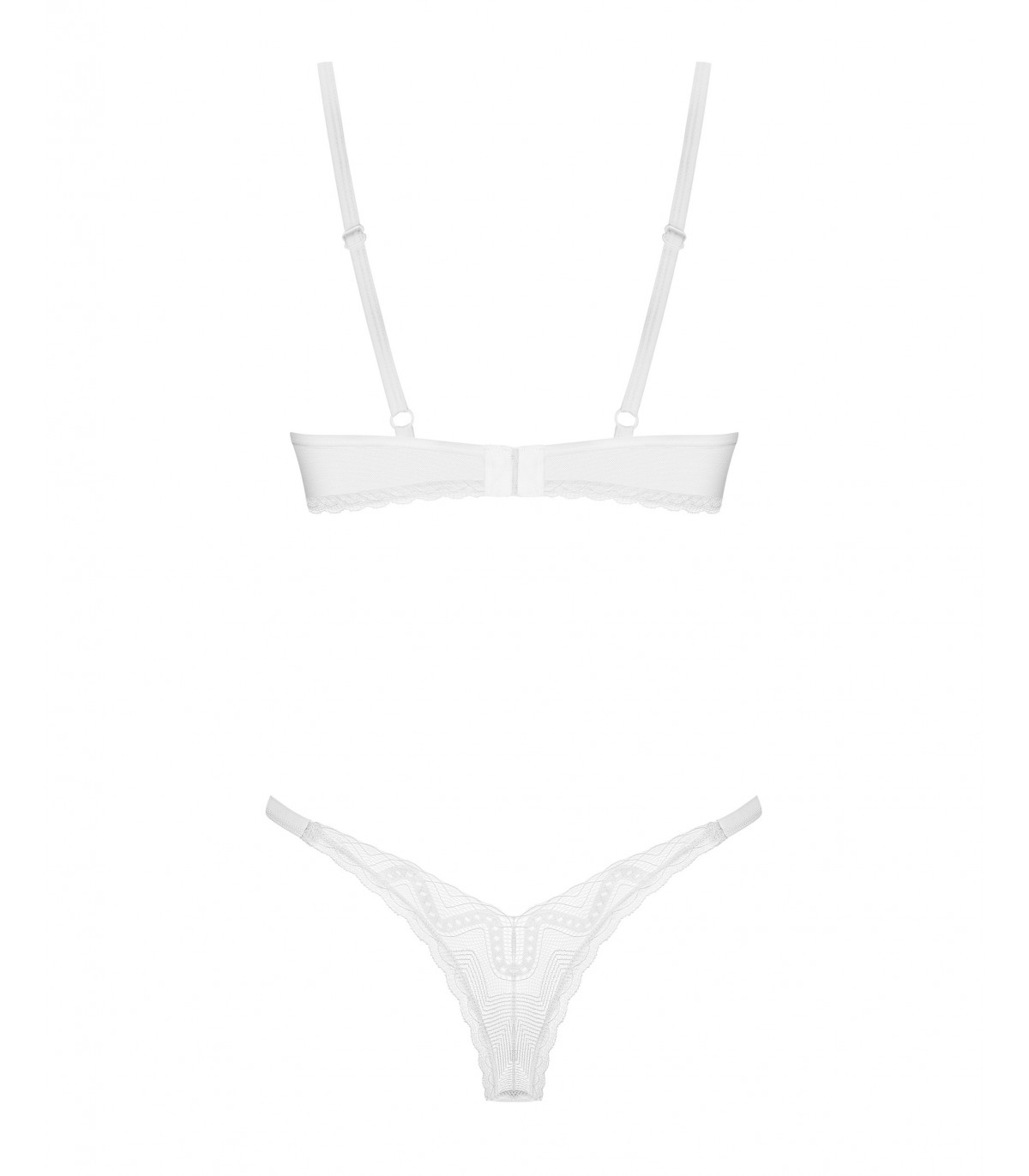 ¿Puede el minimalismo encender la pasión? ¡Este conjunto blanco de Alissium responde con un rotundo sí! El estilo de lencería tradicional se combina con un intrigante motivo geométrico que despierta imaginación y encanto. El sujetador y el tanga, que esculpen tus curvas con delicadeza, seguramente dejarán una impresión duradera, no sólo en ti… ¡sino en cualquiera que tenga la suerte de contemplarlo! Da rienda suelta a tus fantasías mientras descubres el potencial sensual de este cautivador conjunto.
