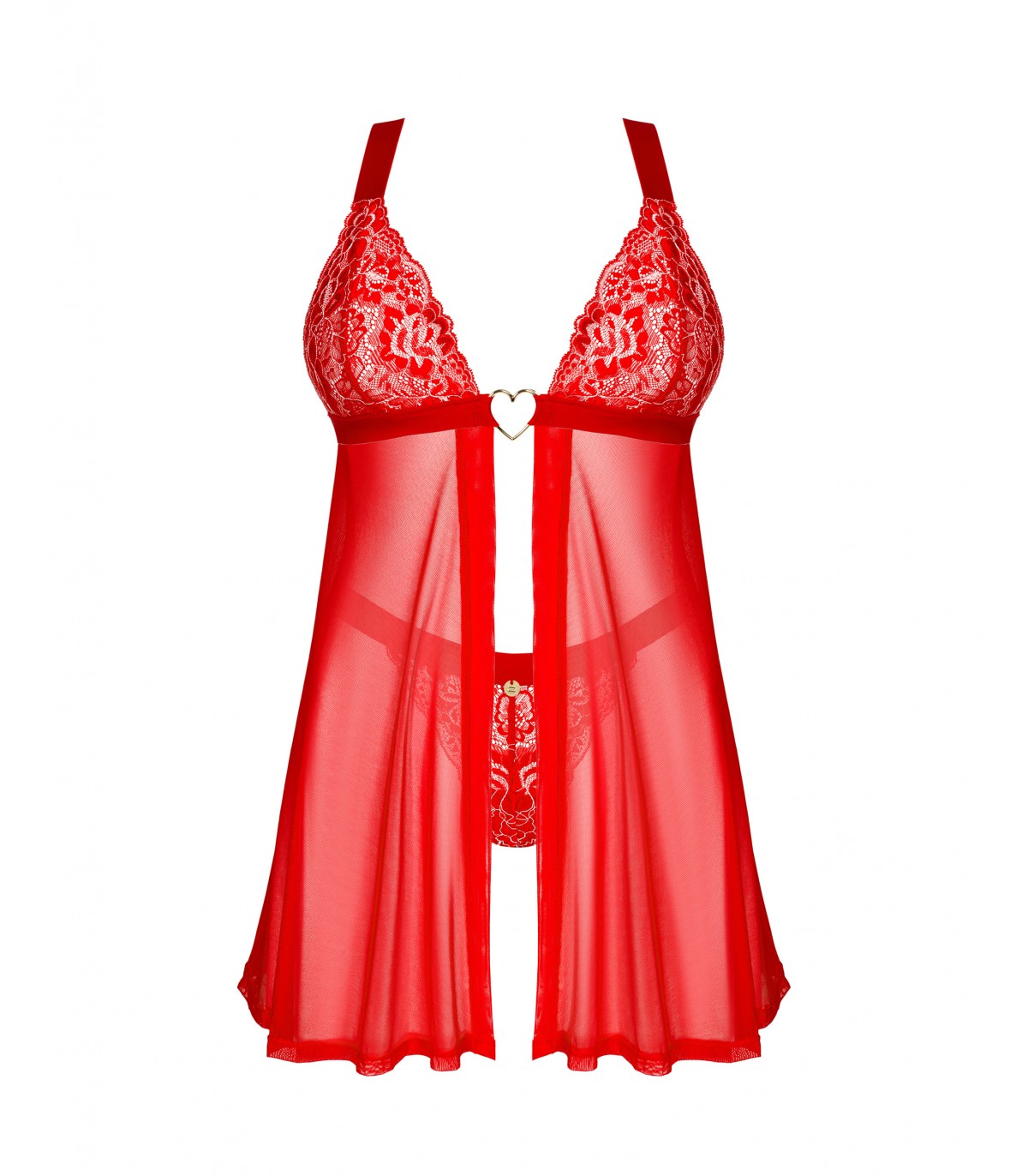 Bonito babydoll con transparencias en el pecho diseñado en color rojo pasión.