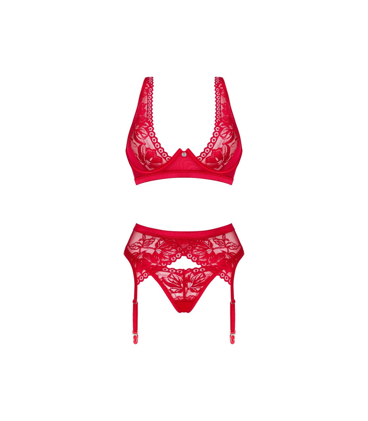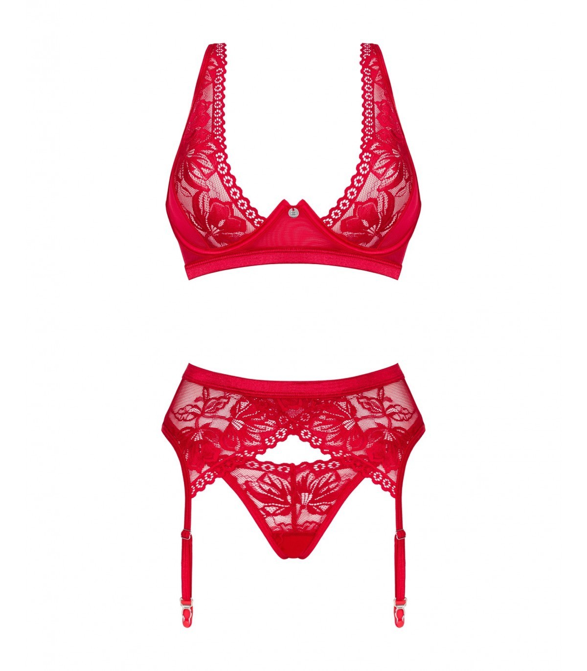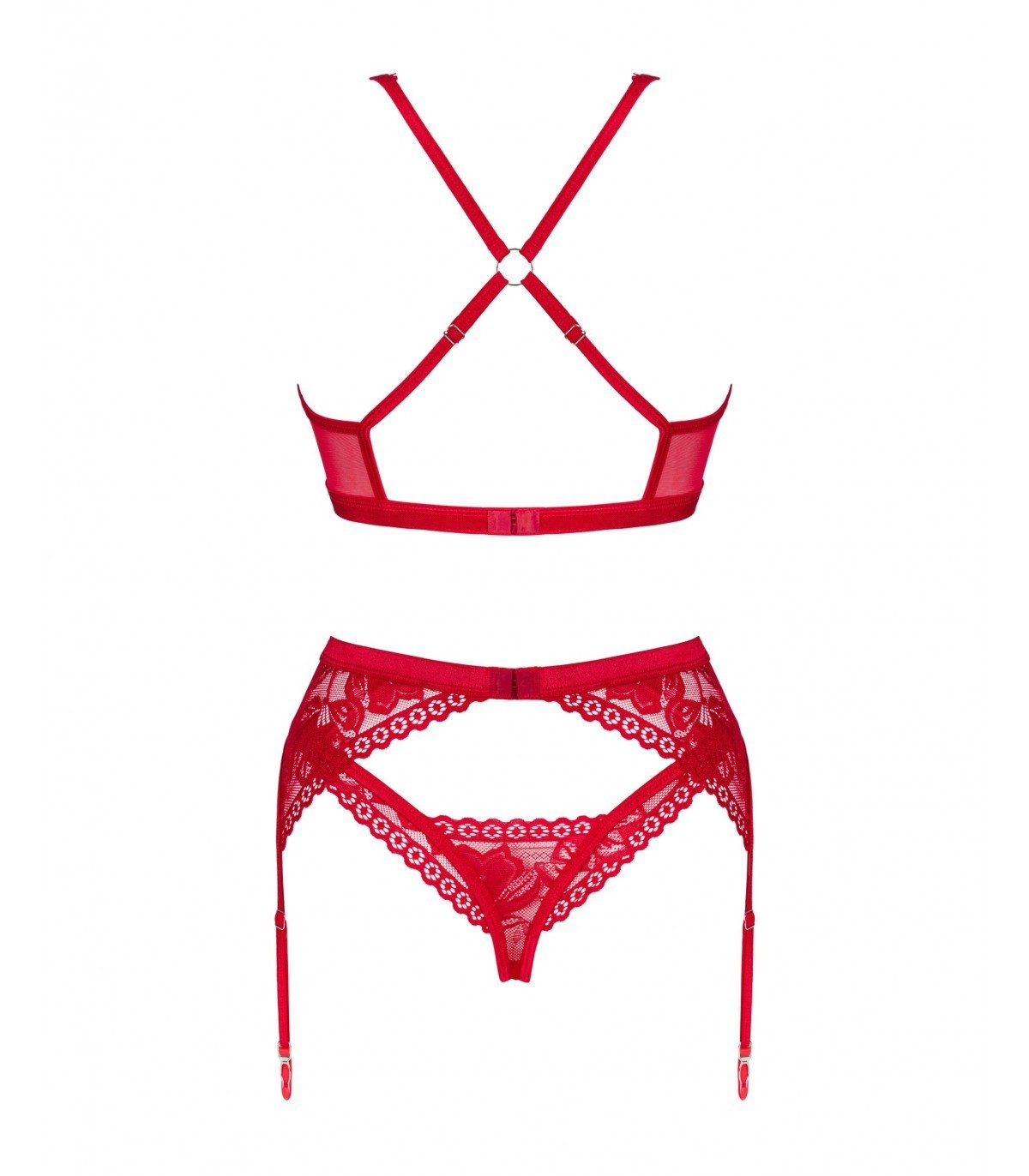 - un conjunto Lacelove rojo compuesto por sujetador y tanga