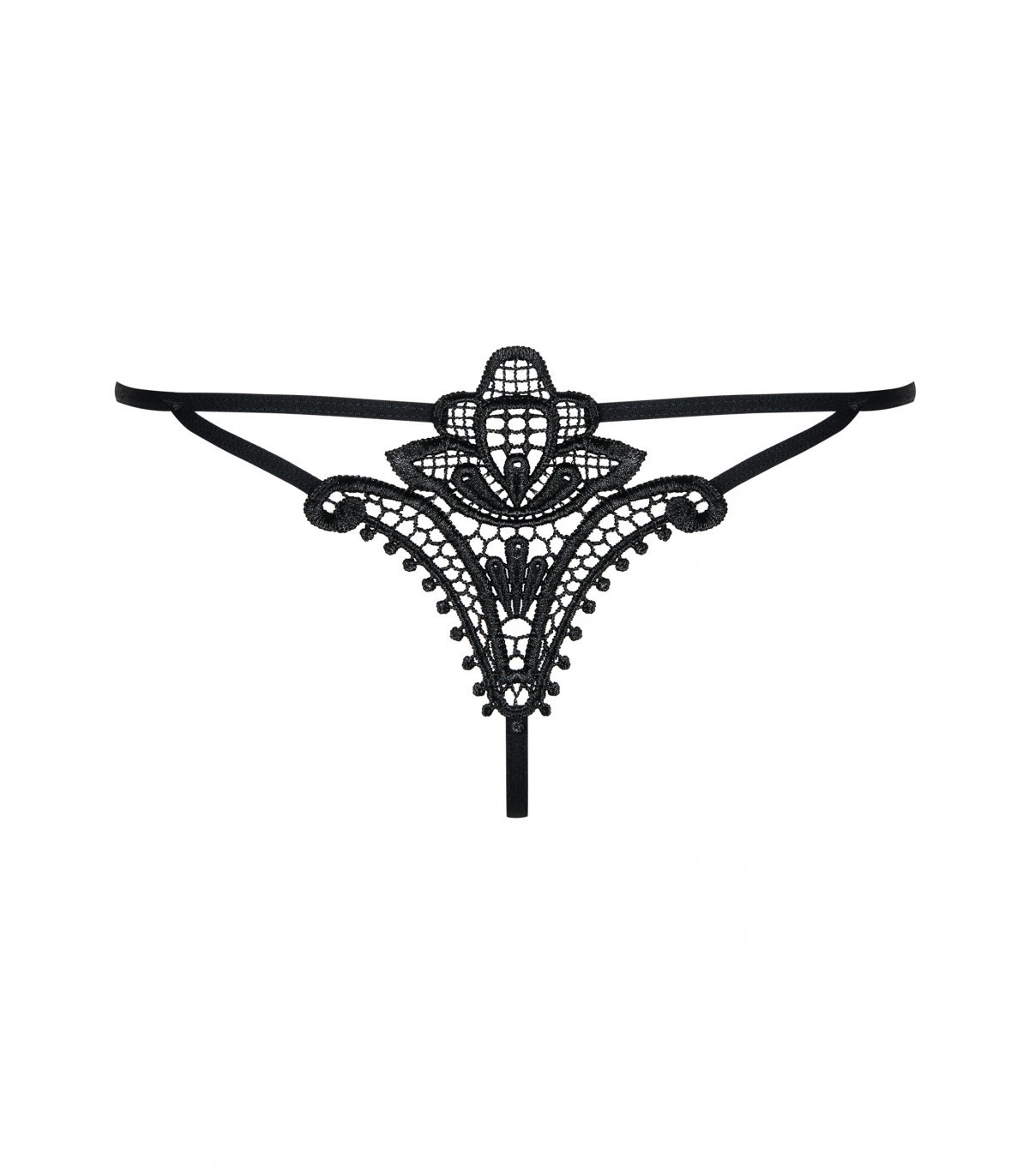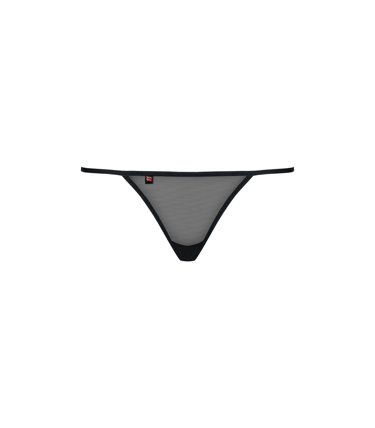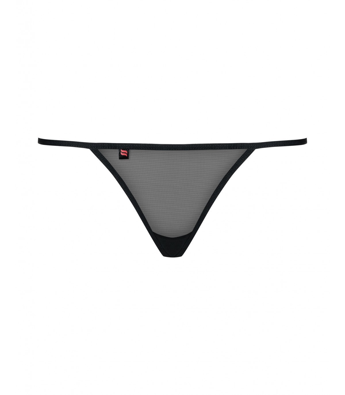 Tanga transparente negro con bonito motivo decorativo en la parte de atras.