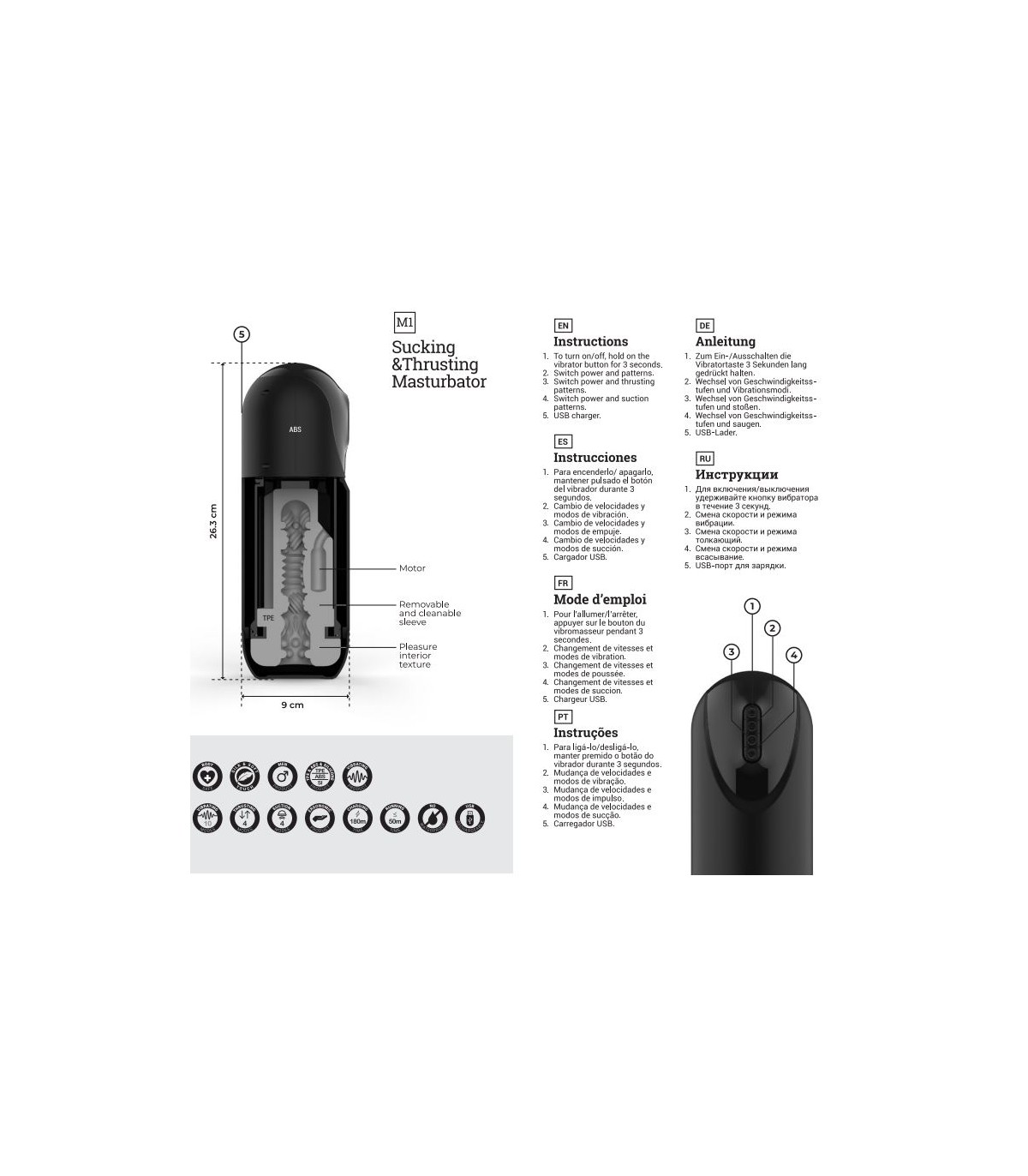 Disfruta de un placer diferente con este masturbador de alta tecnología para pene con la función especial sube y baja, succión y vibración. Sentirás el realismo de la penetración al ritmo que tú desees gracias a sus diferentes intensidades. Además es recargable por USB.
