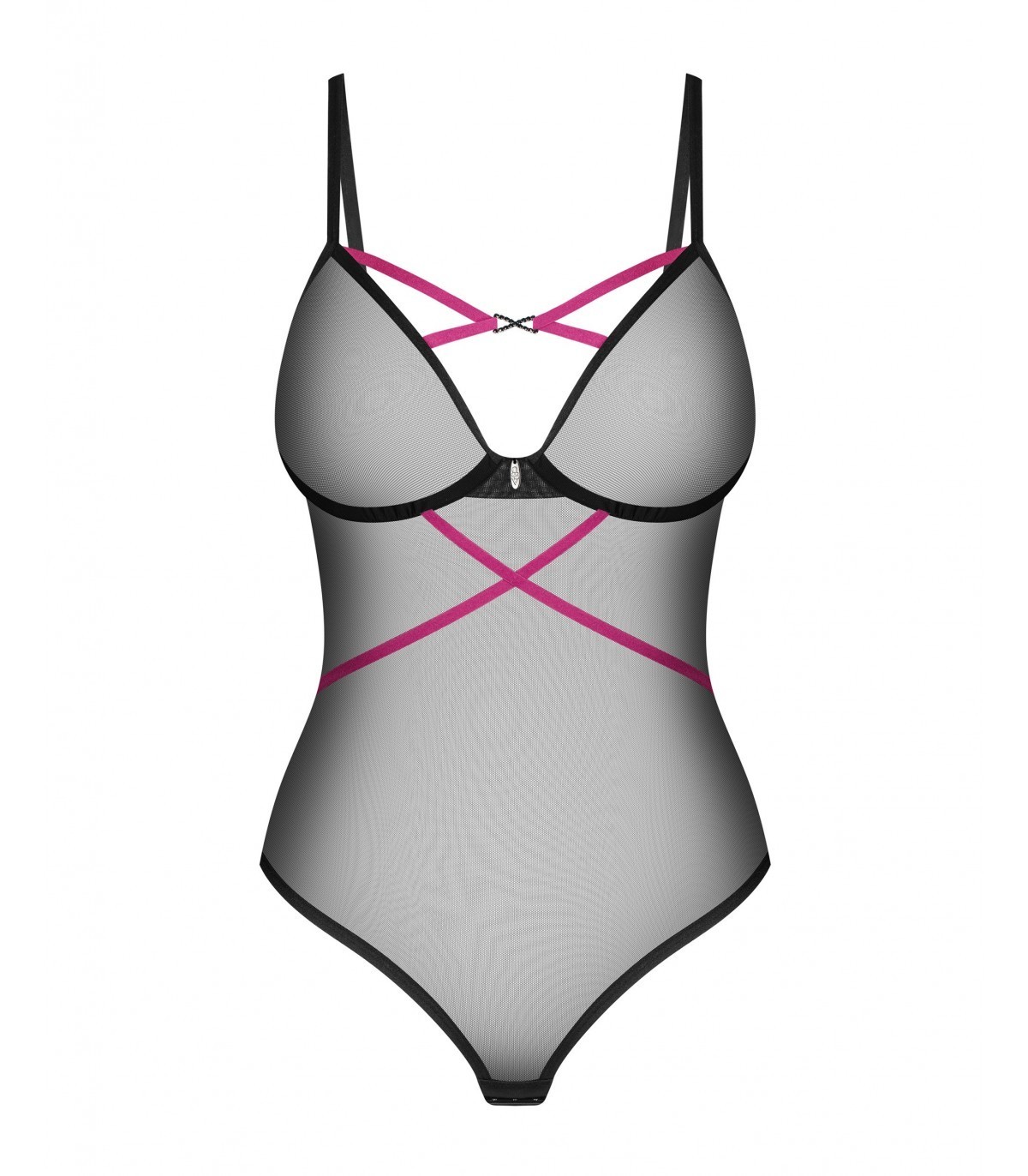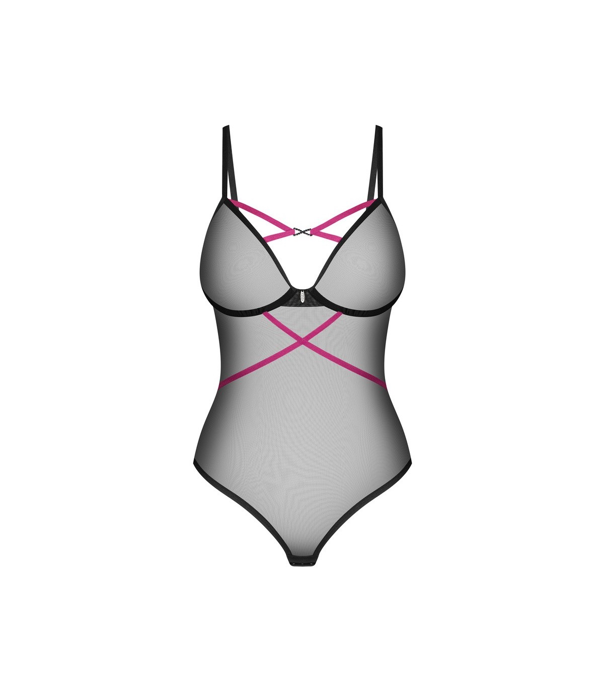 Minimalismo sexy con toques morados: ¡es una combinación que seguramente causará impresión! Este body presenta un corte clásico entallado. El material con corte alto en las nalgas junto con los aros garantizan un look seductor. Los tirantes morados se envuelven ligeramente alrededor de la cintura y se cruzan seductoramente entre las copas, atrayendo las miradas. Siéntete segura con la lencería Novenes y crea recuerdos llenos de intimidad.