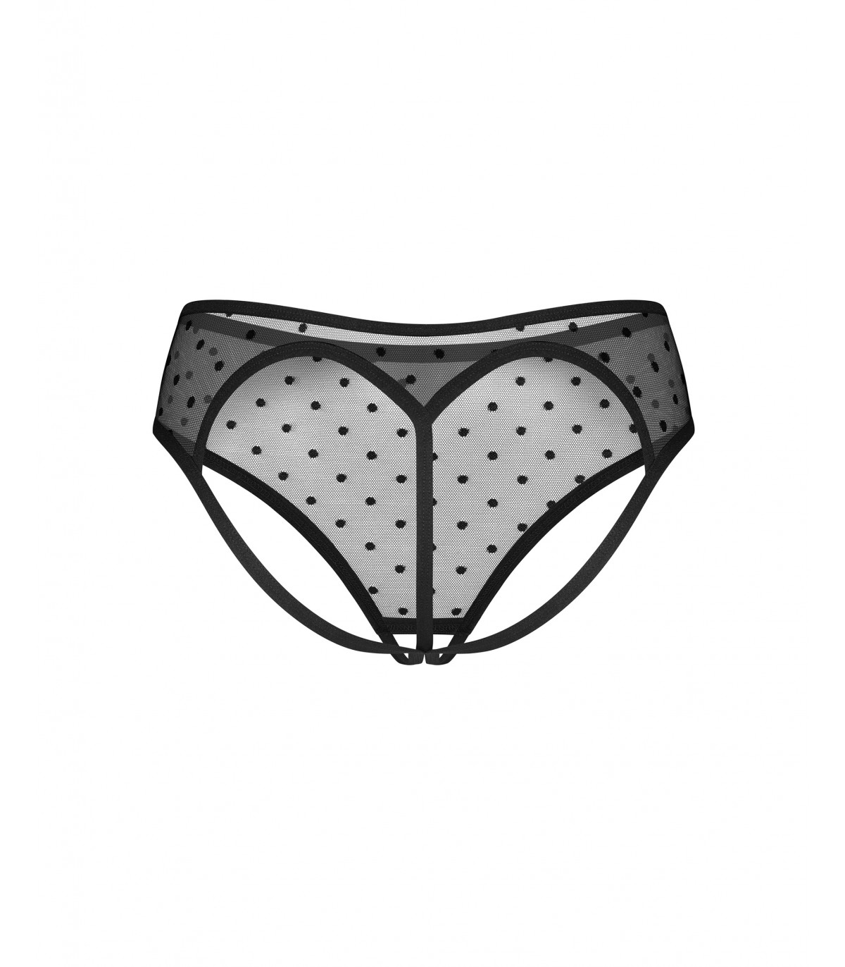 Estas braguitas Nuites de cintura alta y sin entrepierna aportan un toque divertido con lunares negros y un corte en forma de corazón en la espalda. Están confeccionadas en una malla suave y transparente y cuentan con un colgante plateado único que le da un toque adicional de elegancia.