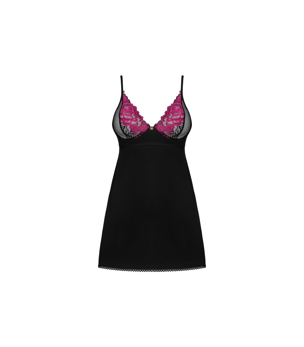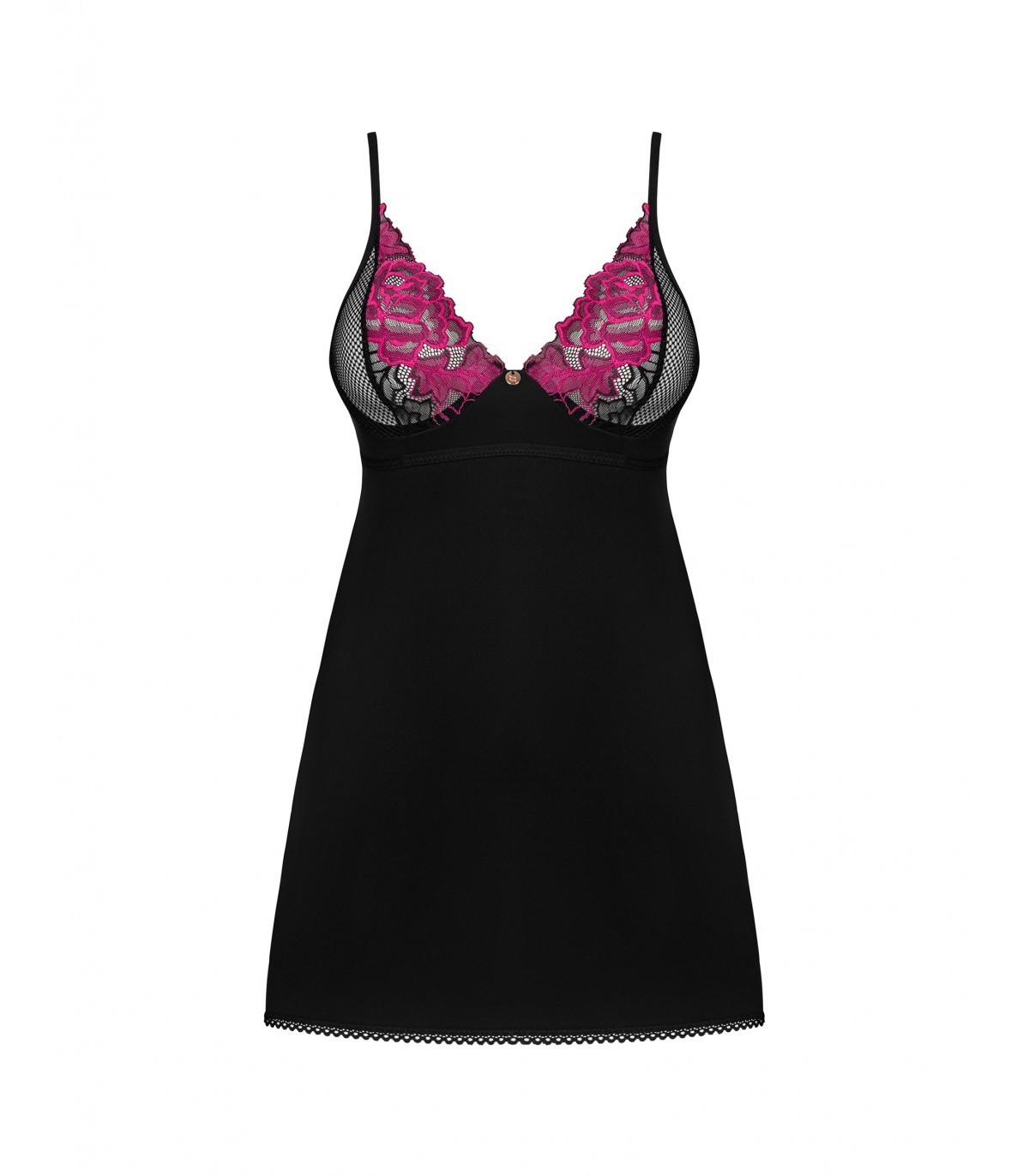 ¿Te atraen las soluciones universales? Si te encanta la lencería que combina comodidad, corte clásico y detalles intrigantes, ¡tenemos algo perfecto! El conjunto Rosenty consta de un tanga y una camisola negra aterciopelada que deja al descubierto las piernas. un tejido suave envolverá tiernamente tu cuerpo y garantizará tu comodidad. Por otro lado, un sujetador con un adorno floral y una malla fina agregará un carácter luchador a tu estilismo.