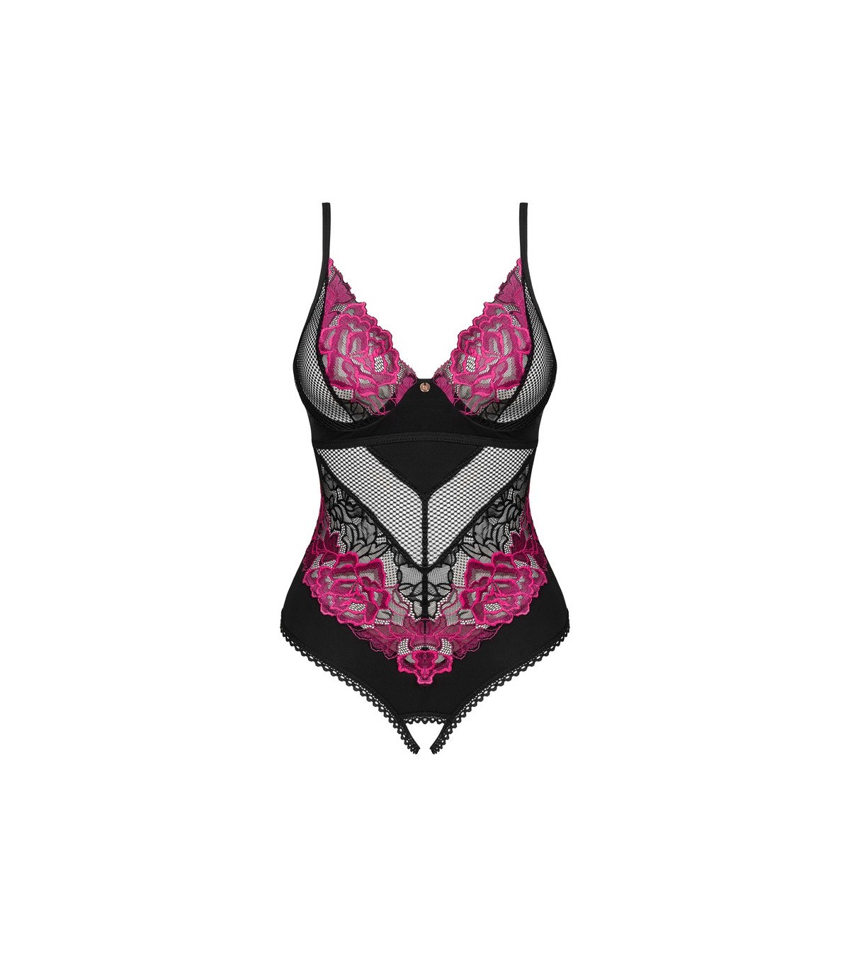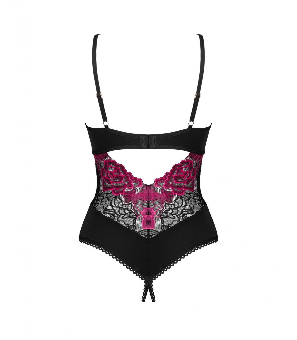 Prepárate para una velada romántica a la luz de las velas y enciende la llama de la pasión en el corazón de tu ser querido. El peluche negro Rosenty con una entrepierna seductoramente abierta te ayudará y al mismo tiempo te presentará los secretos del placer irresistible. Deja que el suave material envuelva tu cuerpo con comodidad y realce tu figura, y los detalles sutiles harán imposible que nadie deje de mirarte.
